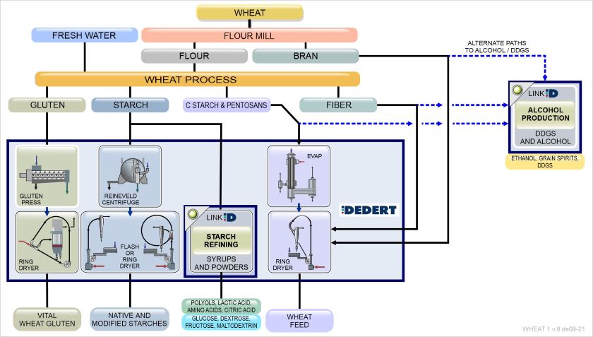 湿磨旨在获取玉米粒中每种成分最高的用途和价值。随着玉米粒被分解成浸水固体、胚芽、纤维、淀粉和面筋,以及玉米油、玉米面筋粉、玉米胚芽面、玉米面筋和浸水,最终产品范围增加。所有产品均在狄德设备上进行加工。