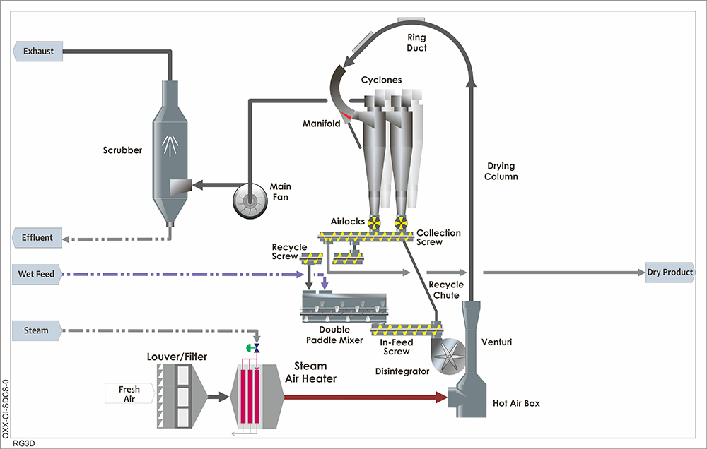 需要注意的是,环形干燥系统必须根据具体需要进行配置。在食品干燥中,开路(OC)环形干燥器适用于干燥豌豆纤维,而动物饲料应在部分气体循环(PGR)环形干燥器中干燥: